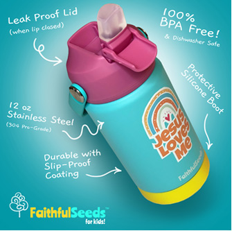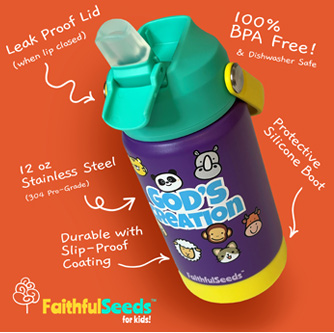 A perfect blend of a children’s thermos and water bottle, offering fun, spiritual encouragement, and anti-spill!